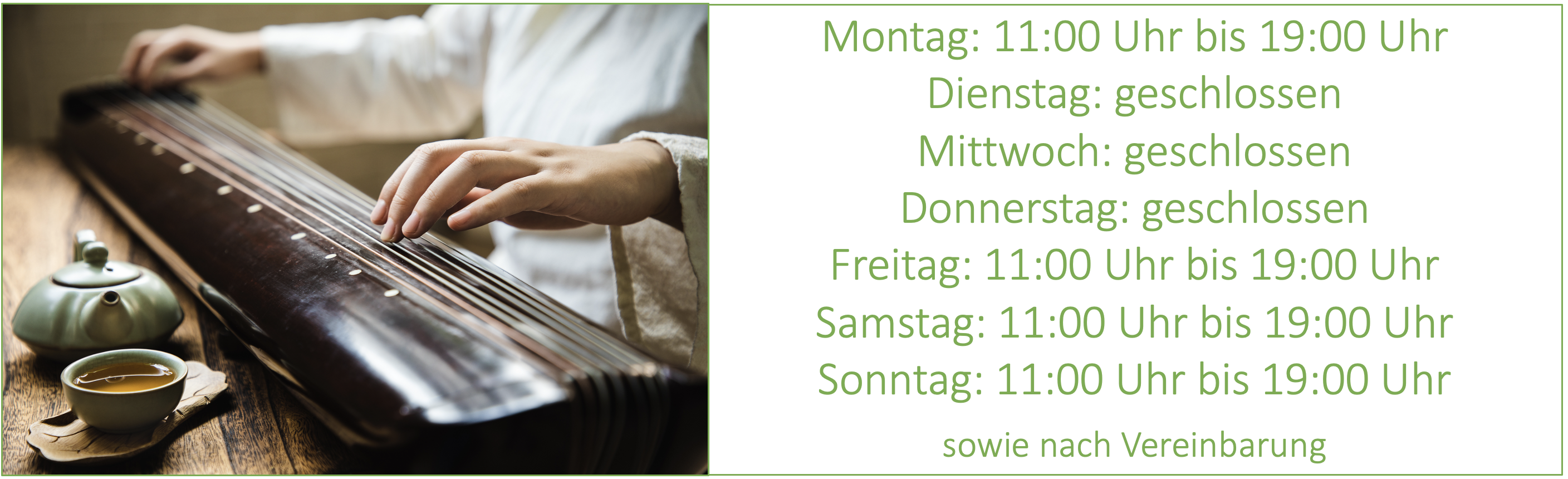 vom 20. April bis 30 April: wegen Film- und Fernsehaufnahmen in China bleibt das Teehaus geschlossen
