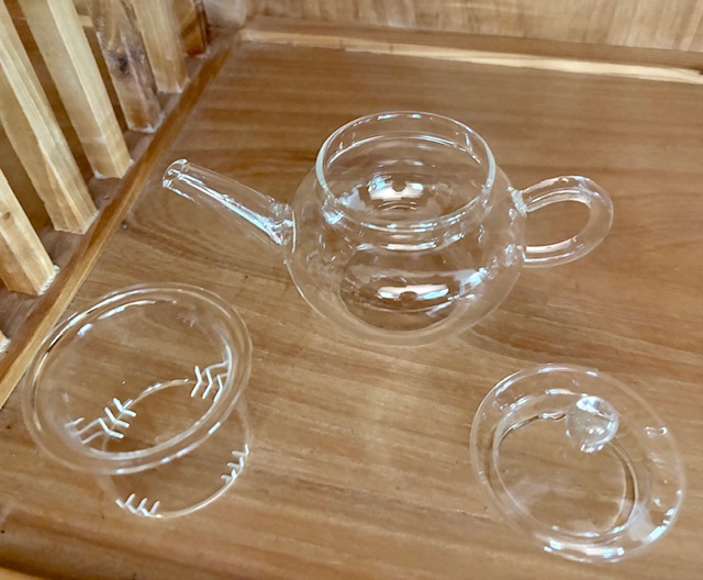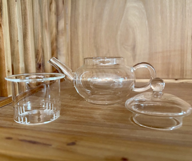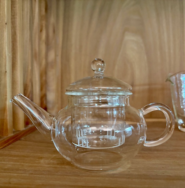 Eine kleinvolumige Glaskanne in Kugelform mit gerade Tülle und einem Volumen von ca. 250 ml. Die Kanne eignet sich besonders gut u.a. für die Zubereitung und das Warmhalten alter weißer oder alter gelber Tees sowie von Blumen- und Blütentees.
