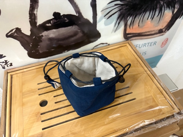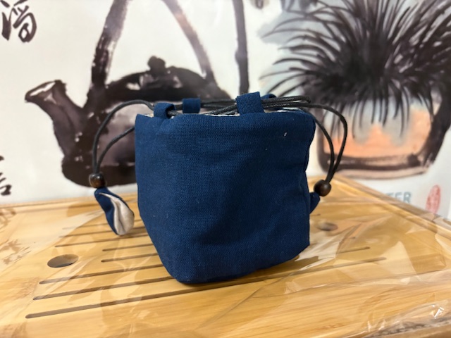 sehr schöner Teekannenbeutel, blau, innen beige bzw. naturfarben, ca. 10 x 10 x 10 cm