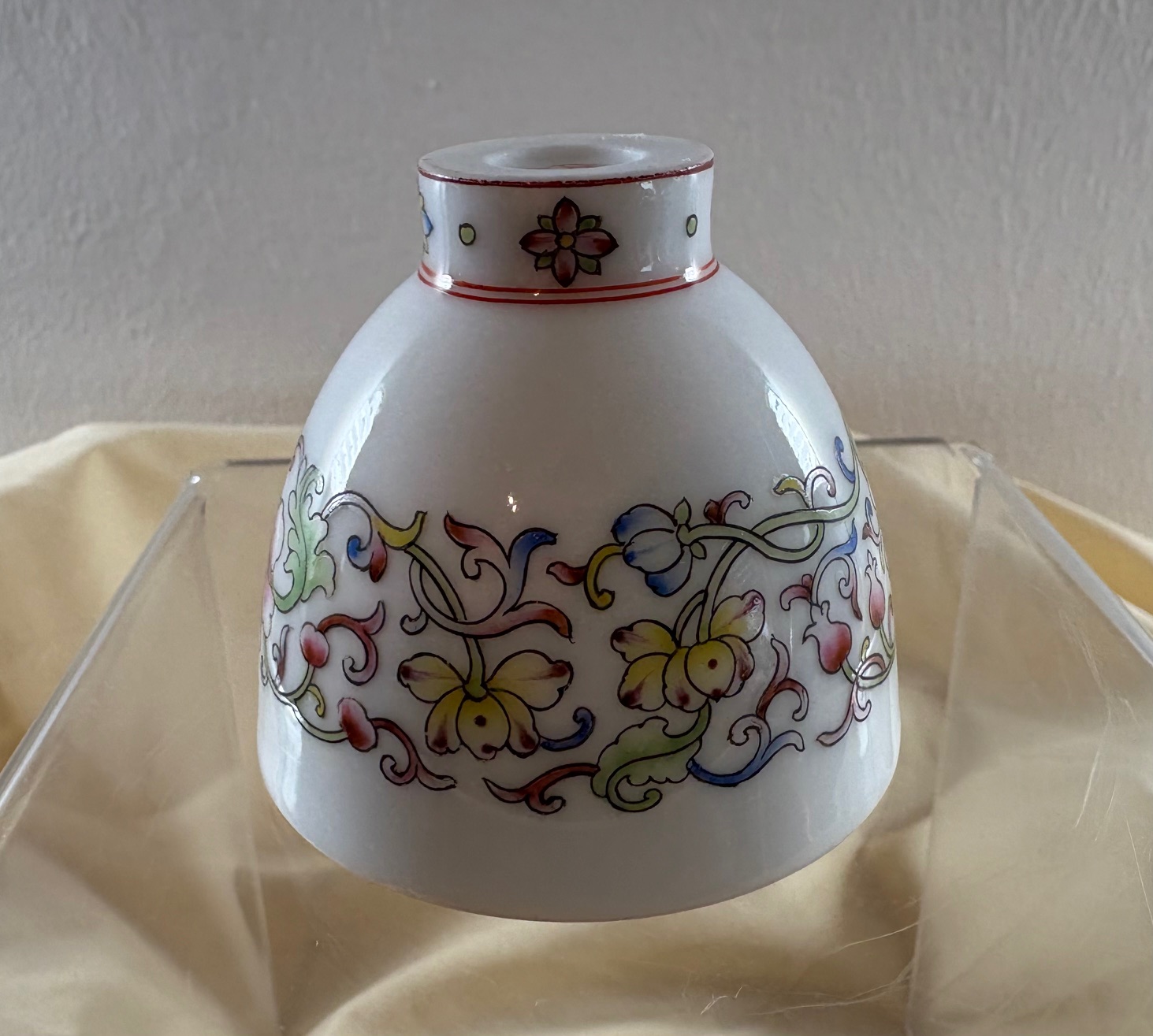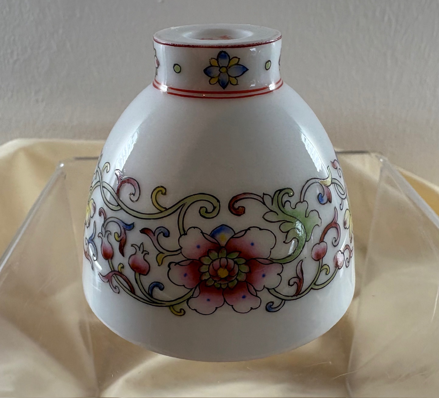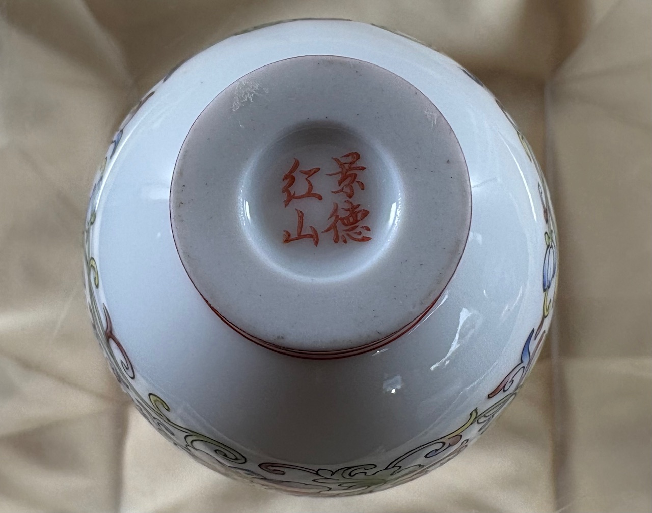 äußerst schönes und seltenes Einzelstück: eine handgearbeitete Teeschale aus Jingdezhen (Provinz Jiangxi); die farbenfrohe Teeschale hat ein Volumen von ca. 80 ml