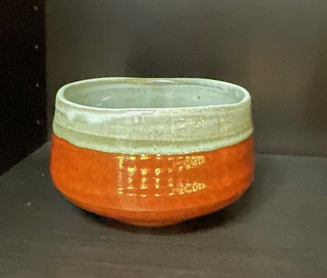 farbige Matchaschale (Chawan) mit einem Volumen ca. 400 ml (Höhe ca. 7,5 cm, Durchmesser ca. 12 cm), und dazu: