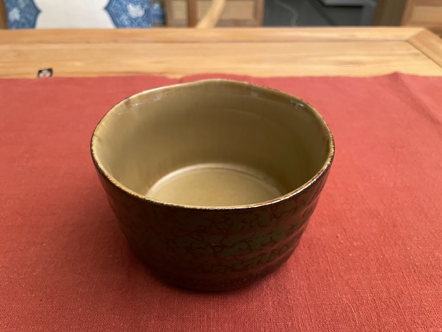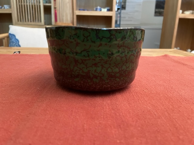 farbige Matchaschale (Chawan) mit einem Volumen ca. 400 ml (Höhe ca. 7 cm, Durchmesser ca. 12 cm), und dazu: