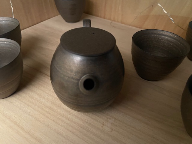sehr schöne dunkel-bronzefarbene Teekanne mit kurzem Ausguss und Tüllensieb - ca. 180 ml