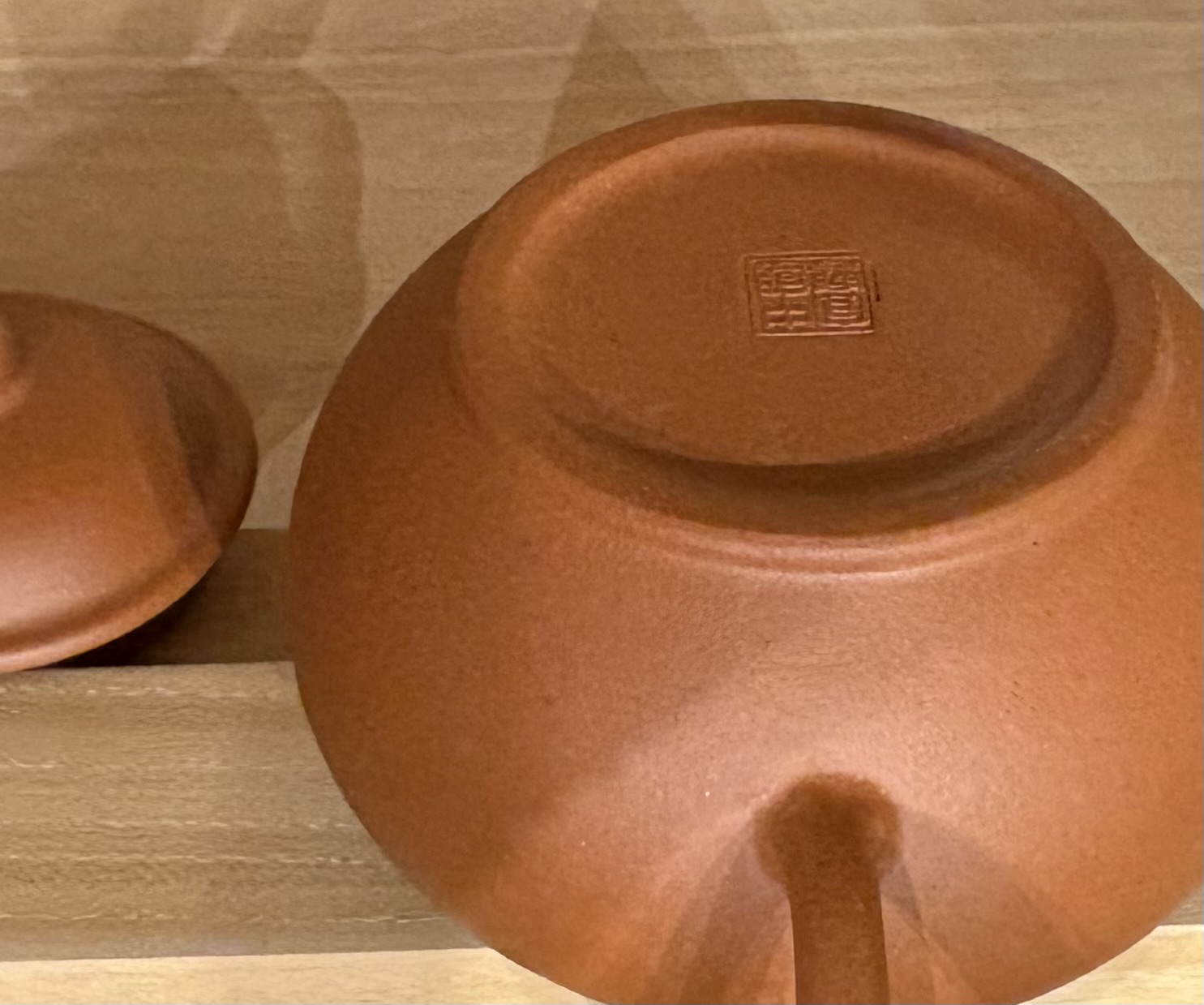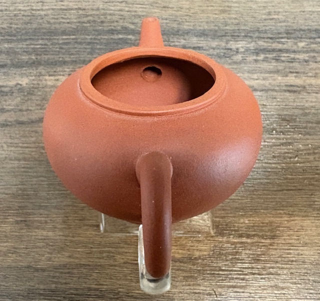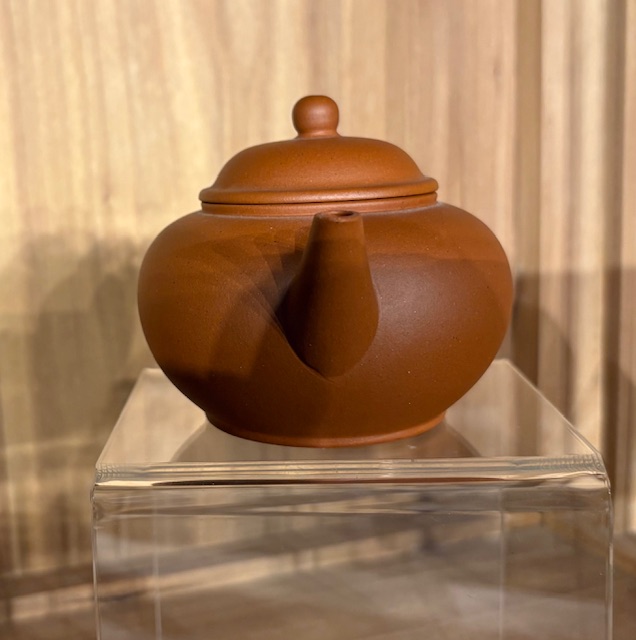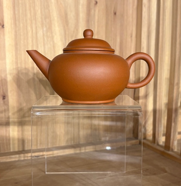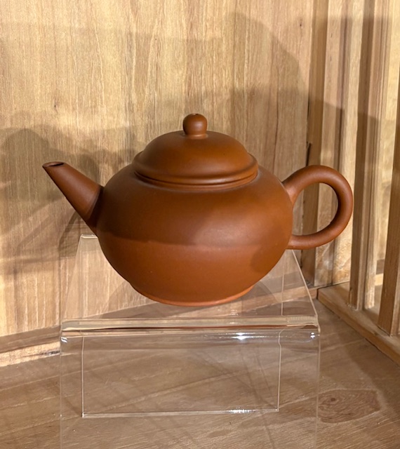 Shui Ping - Hongni: rotbraune Teekanne aus Xiamen (Provinz Fujian) Kugelform mit langem geradem Ausguss und Tüllensieb, gute Verarbeitung und sehr gute Gießeigenschaften; klassiche Schlichtheit ohne jegliche Verzierungen, ca. 150 ml; keine Yixing- bzw. Zusha-Teekanne ohne Tüllensieb (s. Bilder)