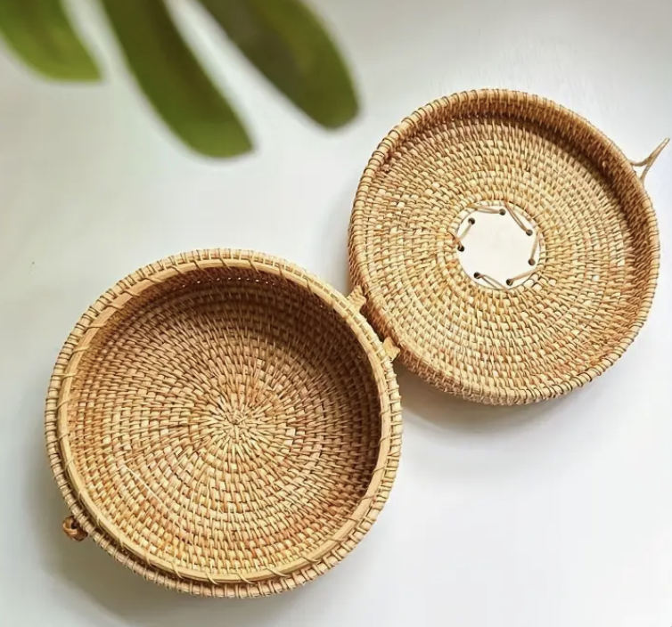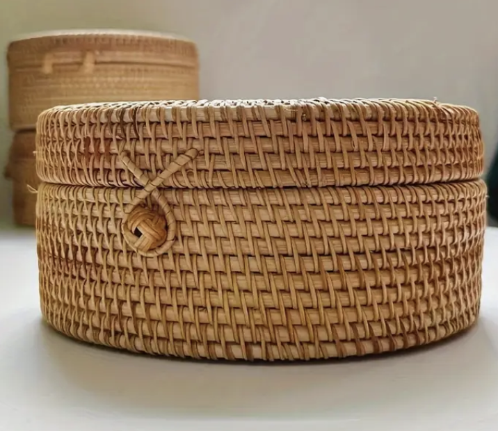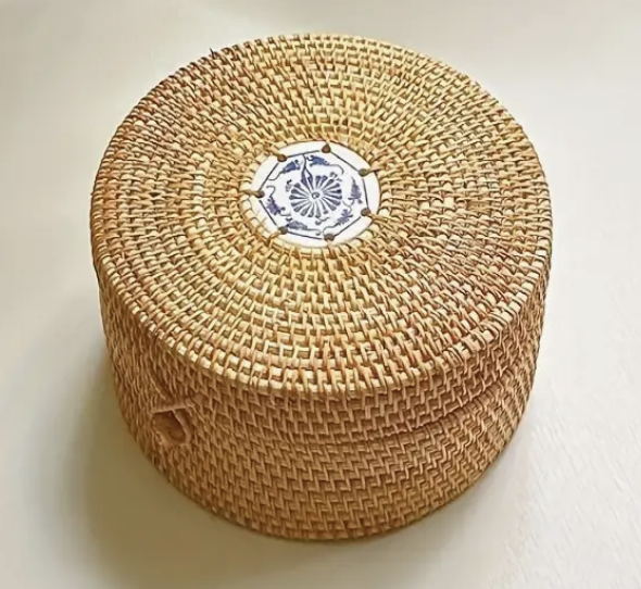 Hier bieten wir einen Teekuchenbehälter aus Korb für die Aufnahme von drei bings, also von bis zu drei (3) Teekuchen in der Größe bis zu 350/357 g, 380 g oder 400 g.
