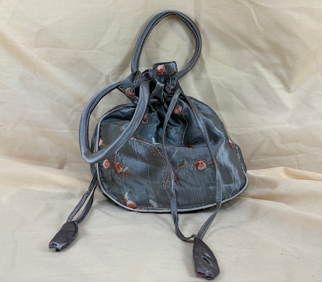 - ein handbestickter Seidenbeutel
