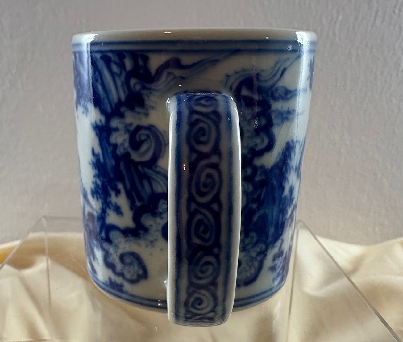 Teebecher mit Henkel aus der Manufaktur Qie Zhai Mu Ming in Jingdezhen in der Provinz Jiangxi