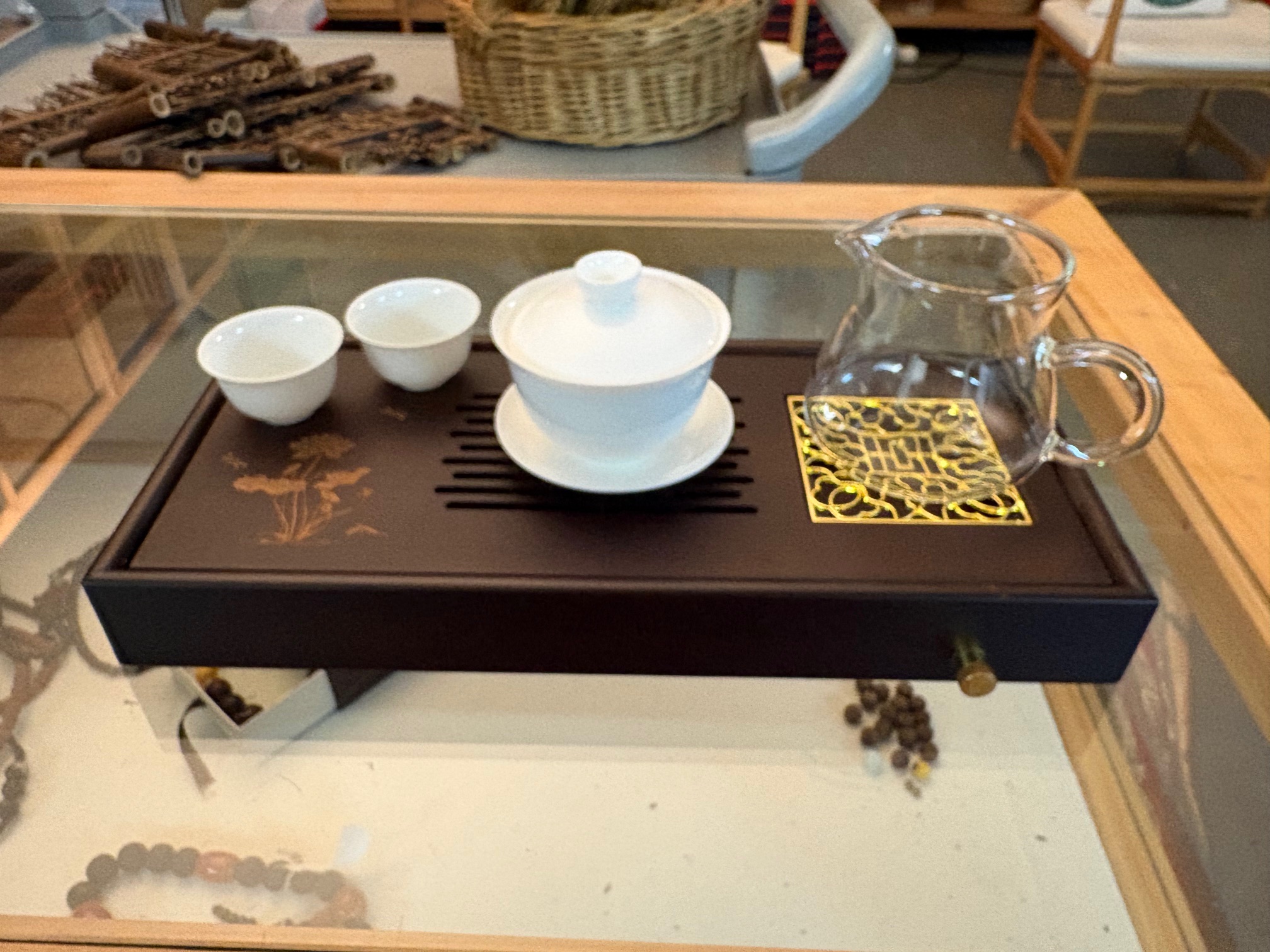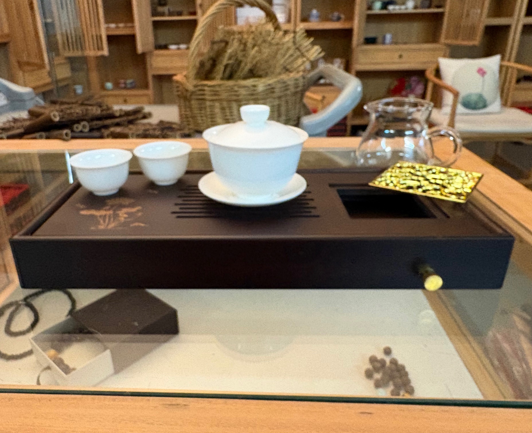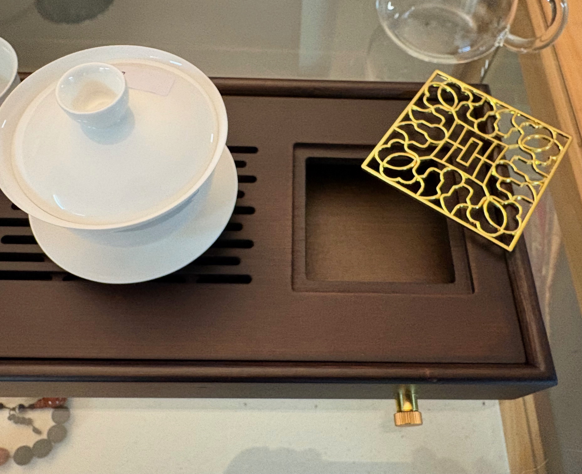 Hier bieten wir einen sehr schönen kleinen, platzsparenden Teetisch bzw. Teeboot aus dunkel gefärbtem Bambus in den Maßen von ca. 320 x 150 x 50 mm. Der schöne Bambustisch, an dem man wahlweise auch einen Ablaufschlauch anschließen könnte, stammt aus Yixing in der Provinz Jiangsu.